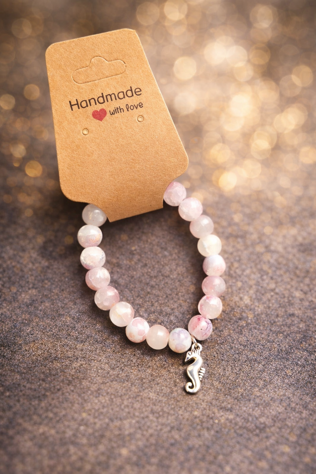 Handmade Bracelet – Pink Marble Stone with Seahorse Charm