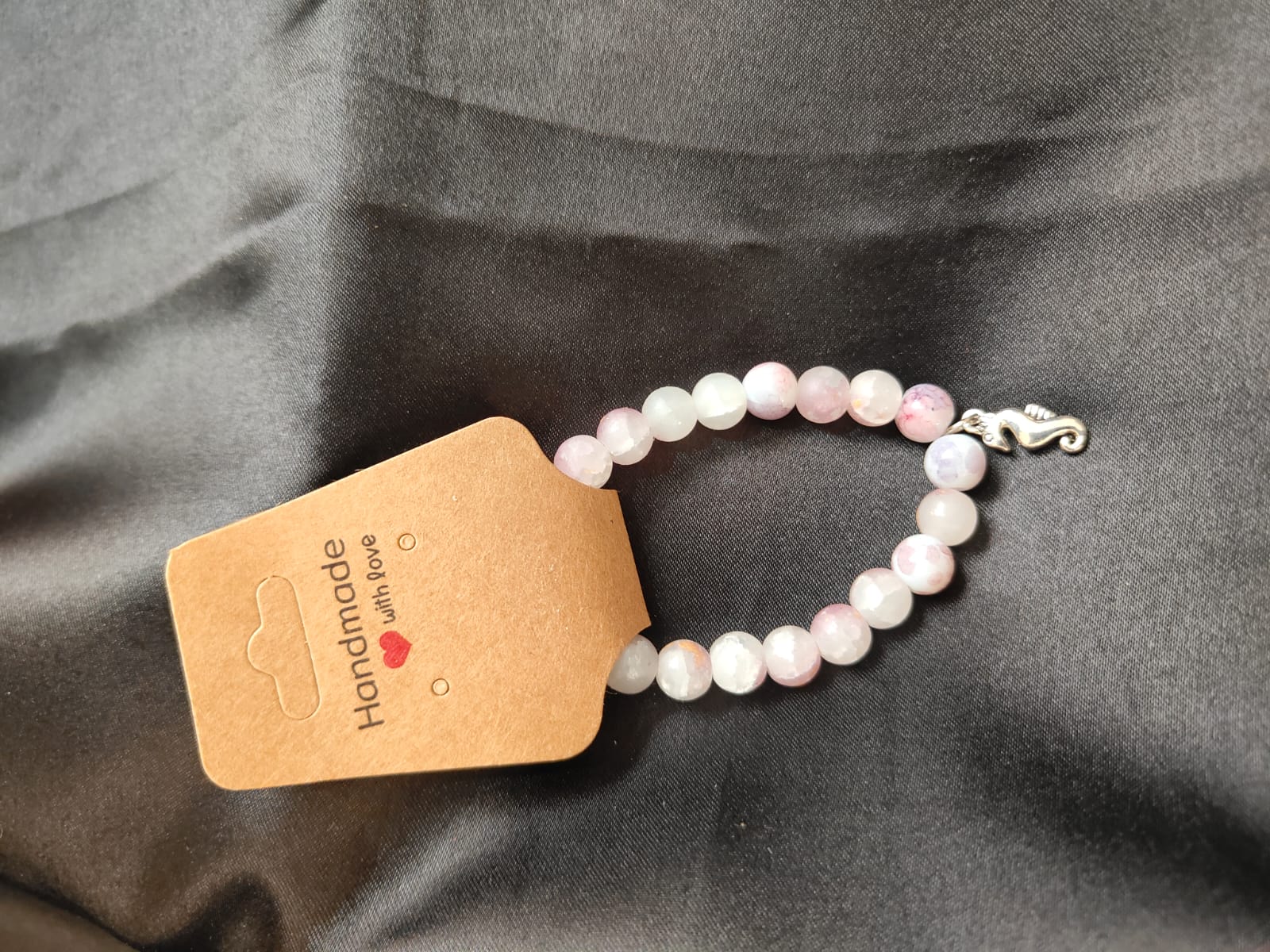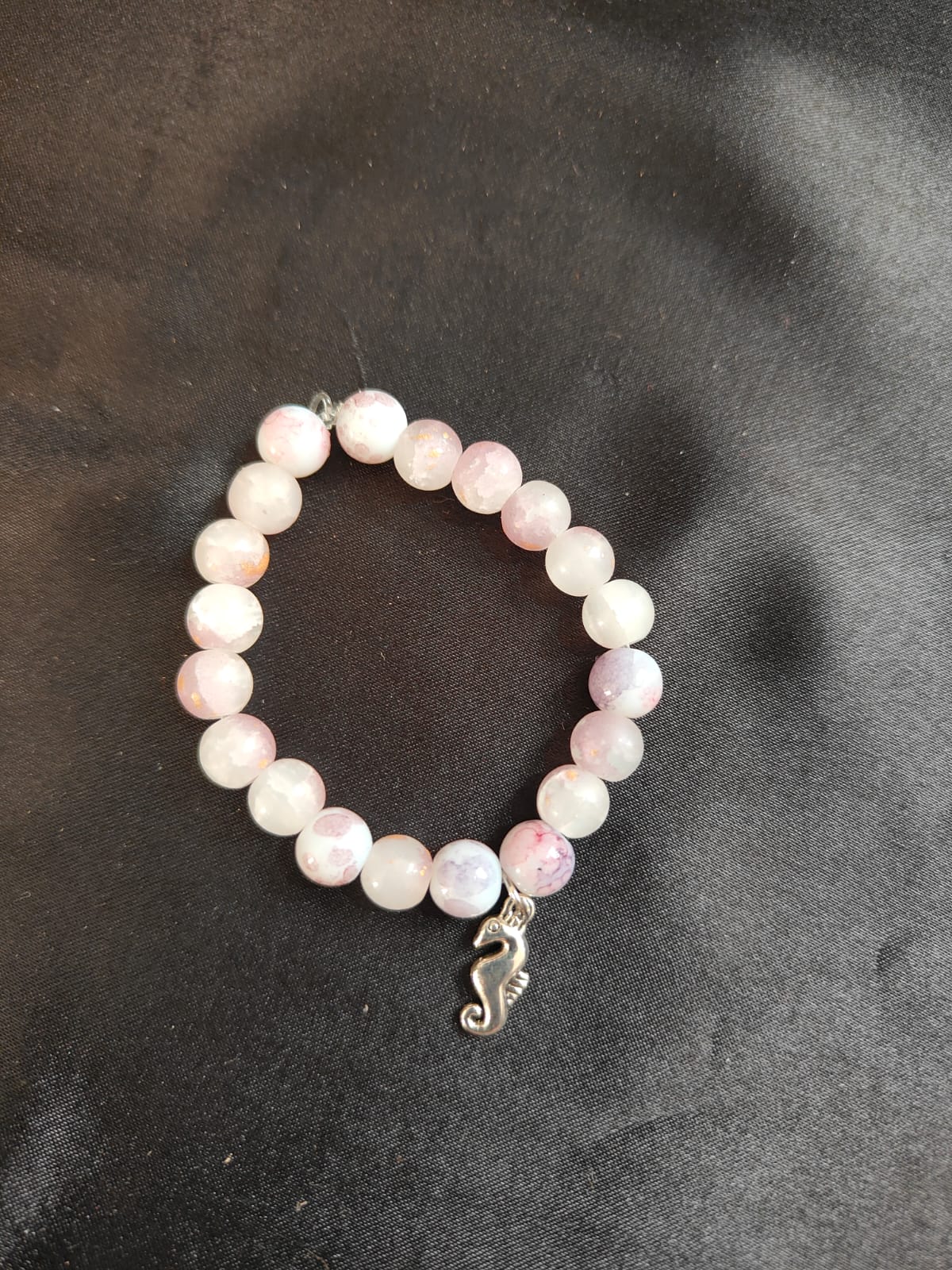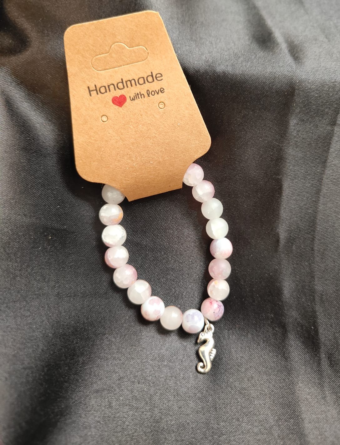 Be the first to review “Handmade Bracelet – Pink Marble Stone with Seahorse Charm”